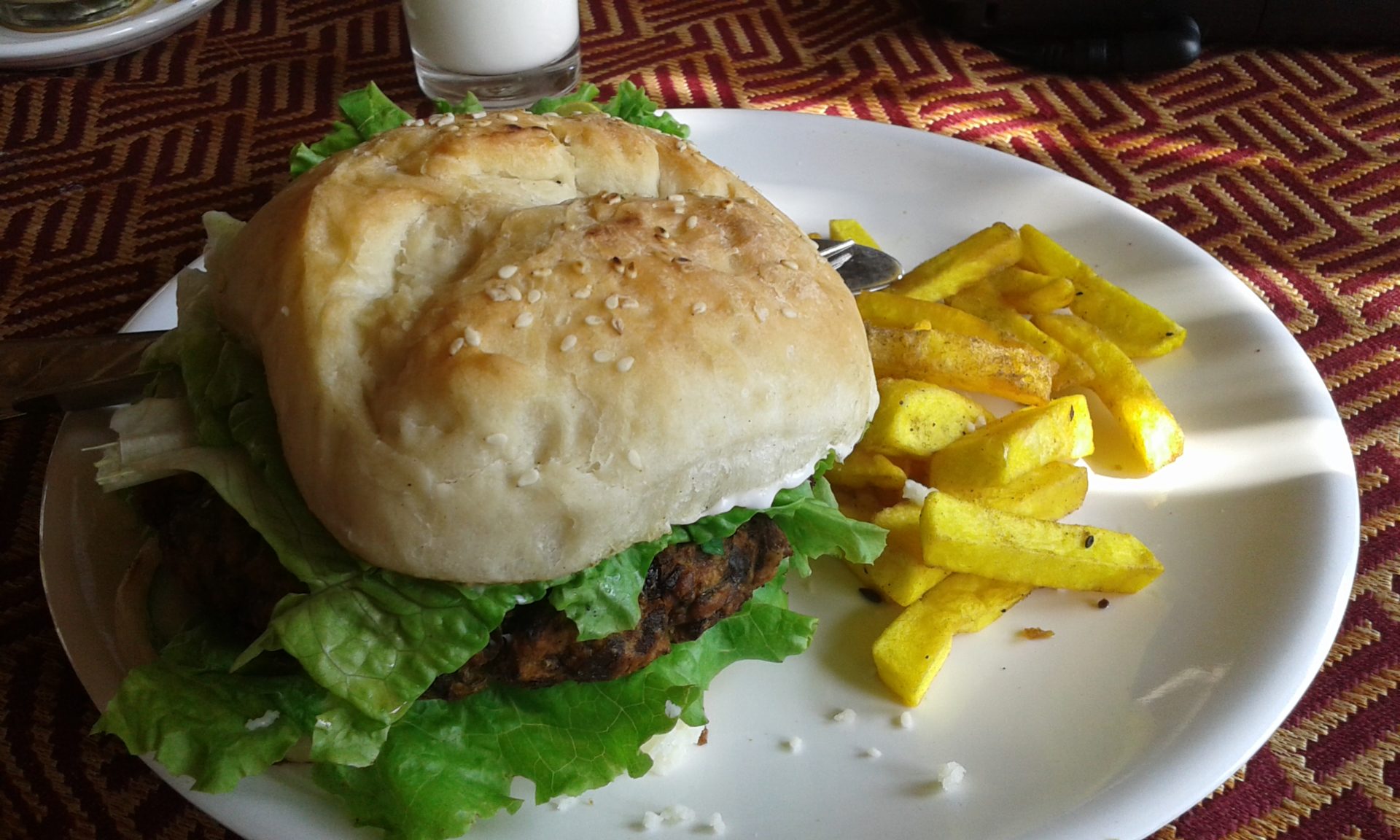 It is very rural here and you get to know a lot of the traditional life of the Indian farmers. While I sit comfortably in a nice “Backpacker Cafe” and enjoy my burger, next to me the rice field is ploughed with an ox team and planted later! Geography class up close!!!