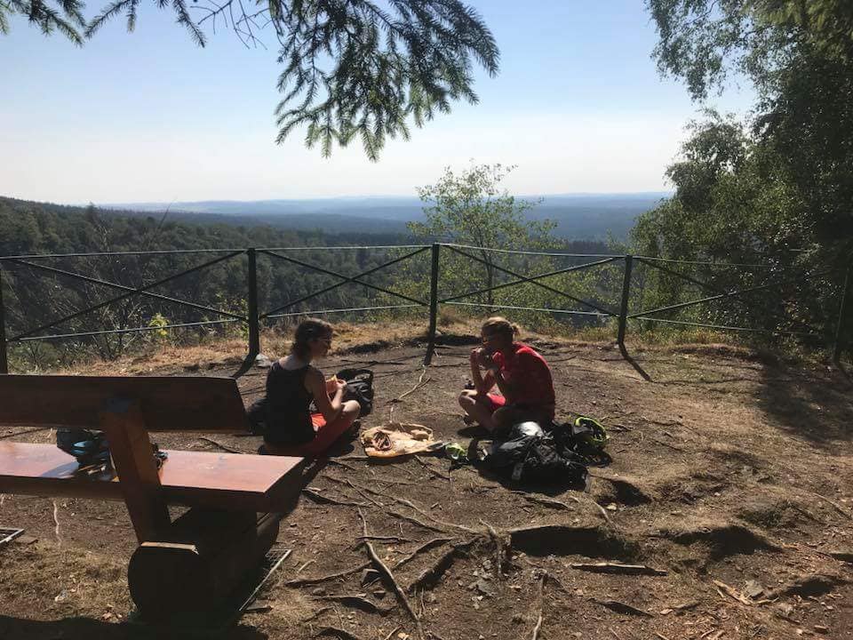 Although we didn’t meet until 5 pm on Thursday in the Harz, this evening was already a real hit. Frank surpassed himself with his navigation crisscrossing the Harz.  I enjoyed the beautiful and varied landscape of the Harz. Again and again there were shorter ascents or descents, which were challengin, in between also flatter sections. After 30 km of almost exclusively trails we arrived in the late evening to our luxury accommodation: a refuge in the middle of the forest with wonderful views, balcony and picnic area.