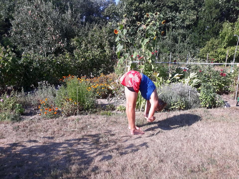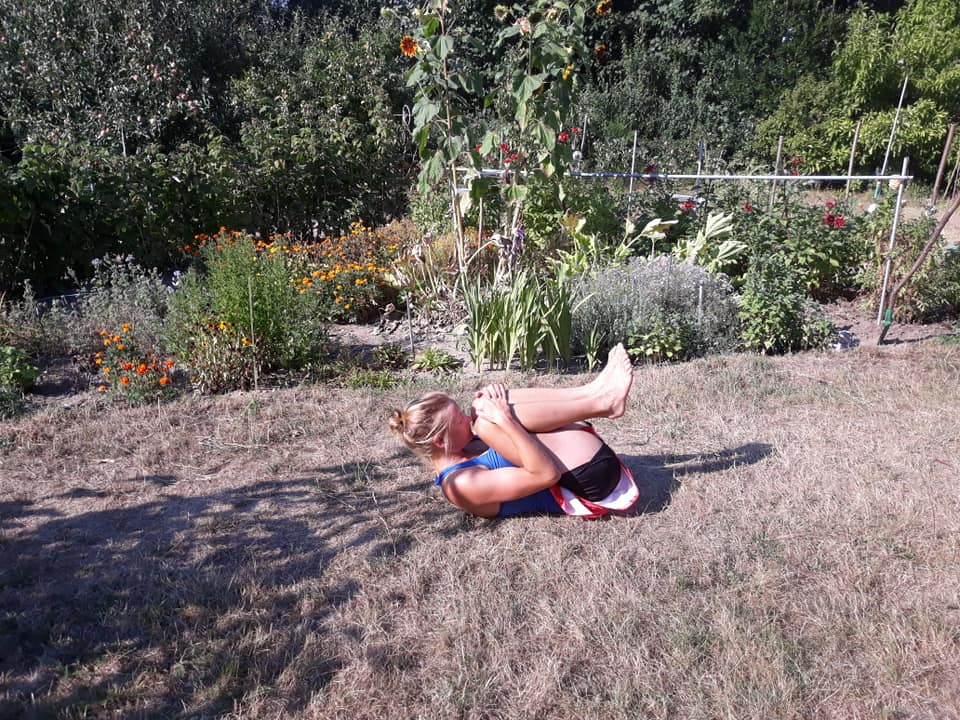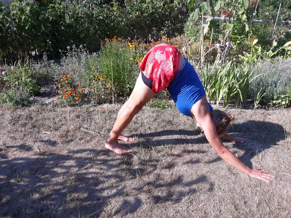 At the beginning of the stretching unit you should warm up your body a little, especially the spine! Some sun salutations are very suitable for this.