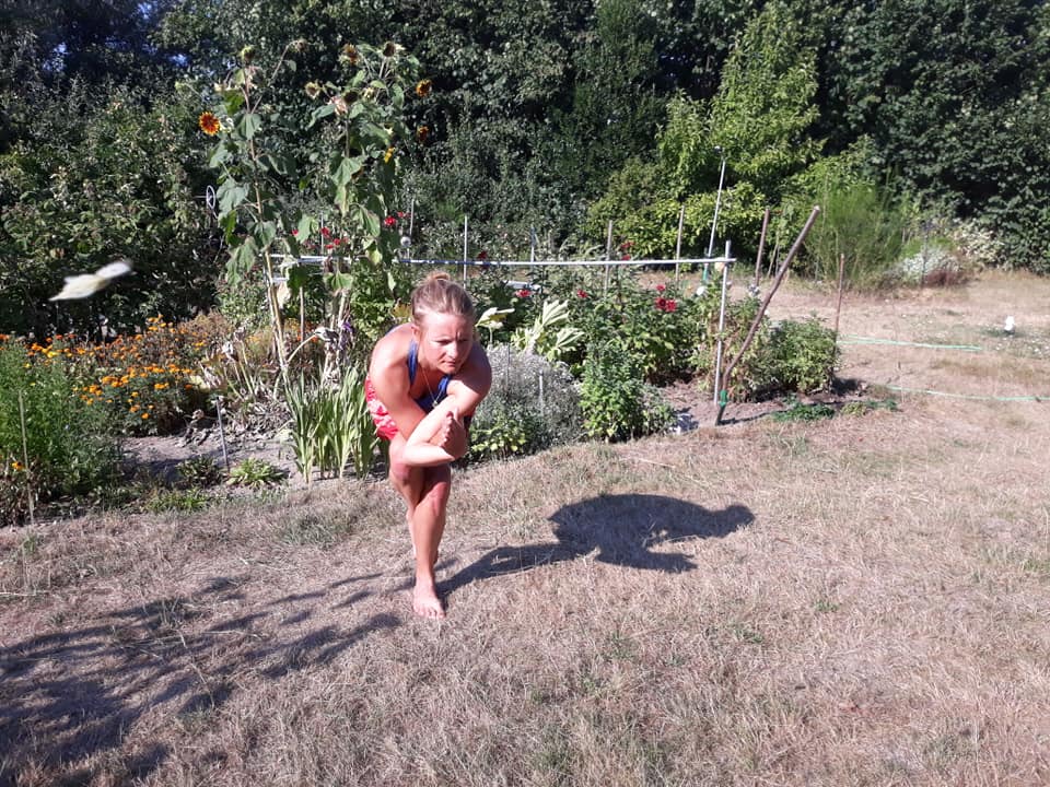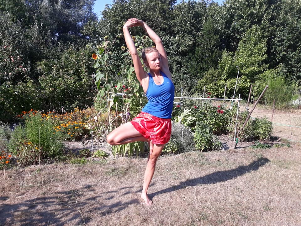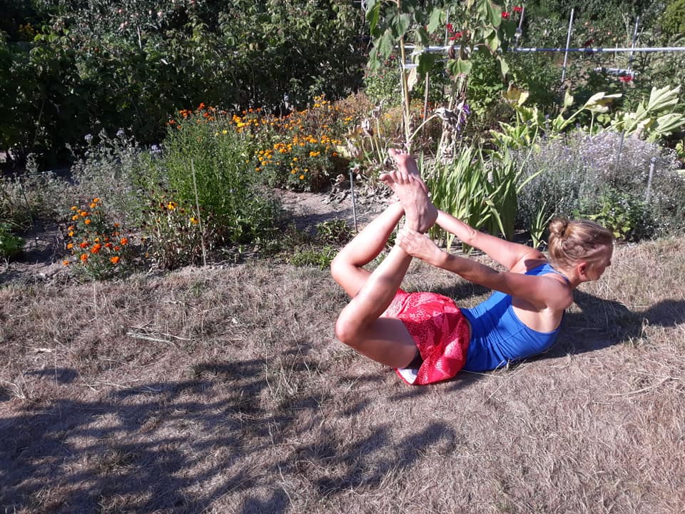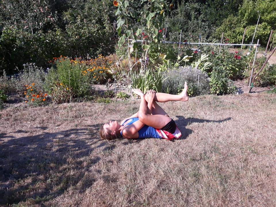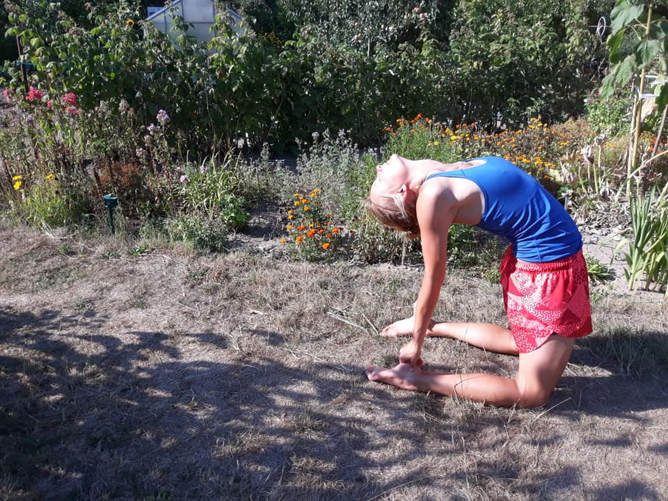 Hanumanasana are used for stretching the entire leg muscles – front as well as back. For cyclists, in addition to an intensive leg stretch, I also find backbends, as a counter-pose, to our long sitting on the bike with rounded back, very useful.