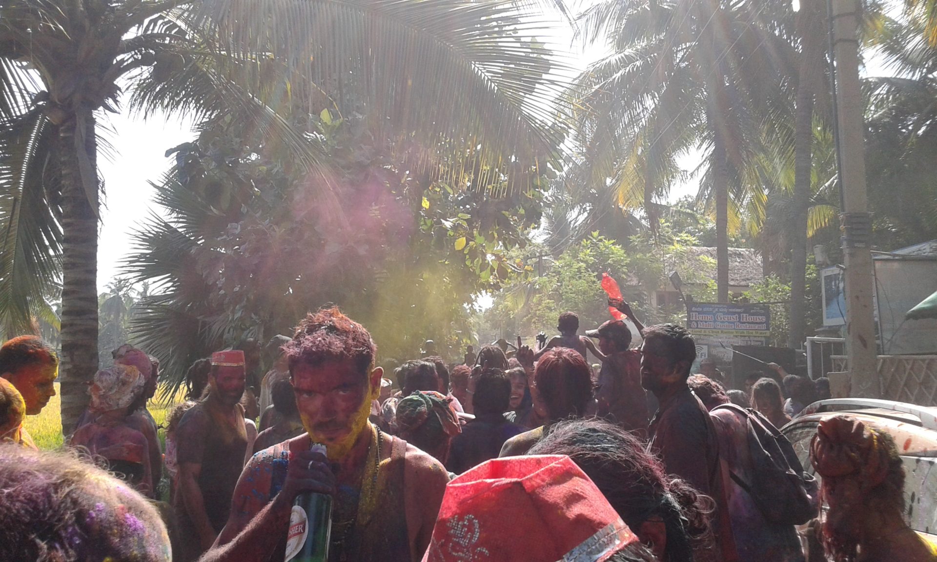 We were very lucky (ok, not too lucky, I planned it :)), as we reached Hampi at the time of the colourful Holi festival. Hampi is one of the few places in South India, where the Spring Festival is actually celebrated and so we took part in the colorful spectacle with powder colour, water pistols and drumming music!