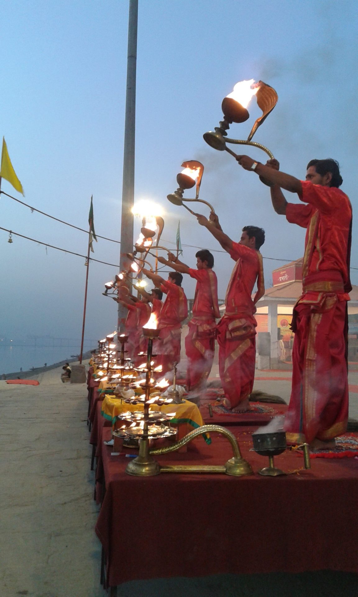 We took boat trips in the evening and in the early in the morning. Both times we took part in the elaborate fire ceremonies at the Ganges and even had the possibility to attend a public yoga class! What an experience!
