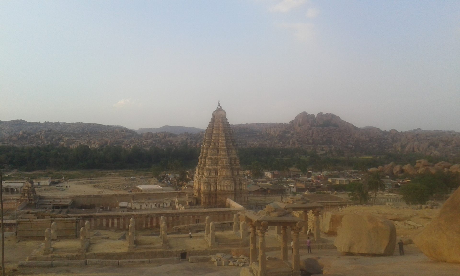 The journey to Hampi via Bangalore from Madurai with two overnight journeys by bus and train was not an easy one. But once you have reached this magical place, all effort is forgotten. Hampi, the world’s largest Unesco World Heritage Site, looks like a place from a fairy tale. Green paddy fields, crumbling temple ruins, palm trees, and rocks as far as the eye can see characterize the surreal landscape of the peaceful place. A small river crosses this place next to the historic buildings and is the place, where the temple elephant takes his bath every morning- just next to the many Indian pilgrims who are also taking a holy bath.